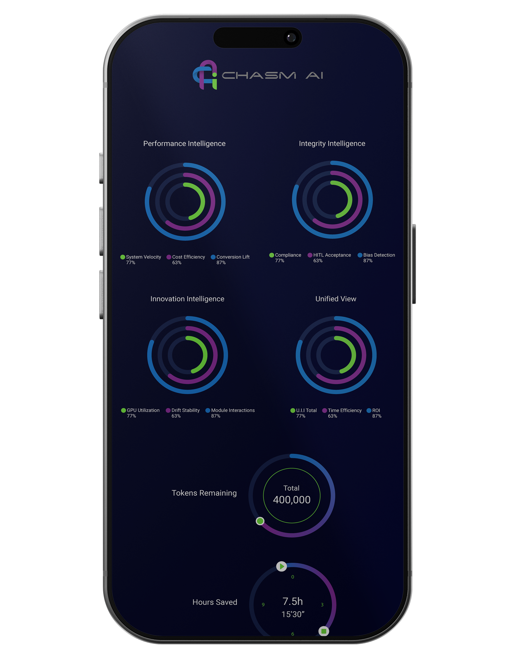 Powered by CHASM’s patented Multi-Sphere Processor, models operate in harmony — optimizing cost, compliance, and insight speed simultaneously. One orchestrator, infinite clarity.